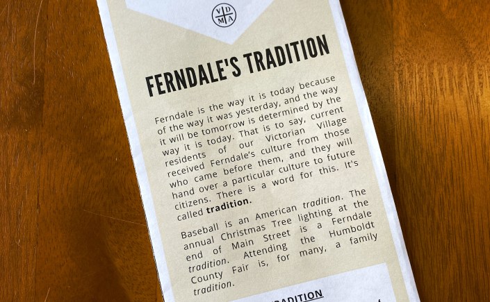 Baseball is an American tradition. The annual Christmas Tree lighting at the end of Main Street is a Ferndale tradition. Attending the Humboldt County Fair is, for many, a family tradition.