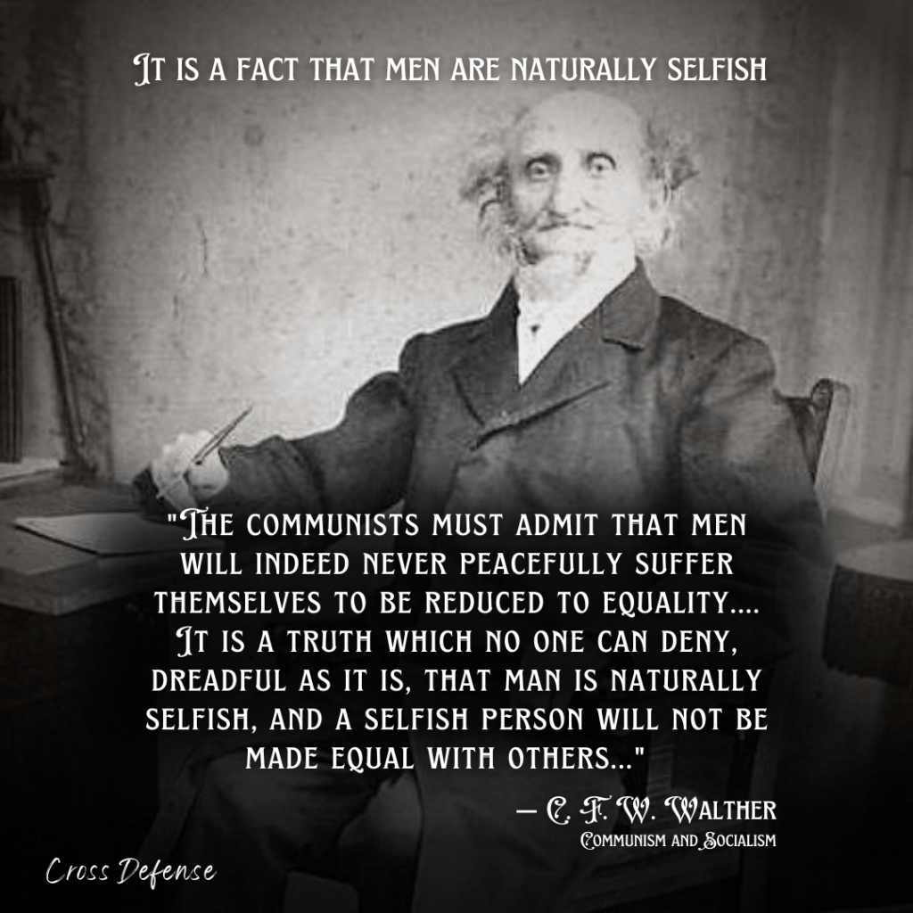 Walther asks the question, “Why should and can no reasonable man, much less a Christian, take part in the efforts of communists and socialists?”